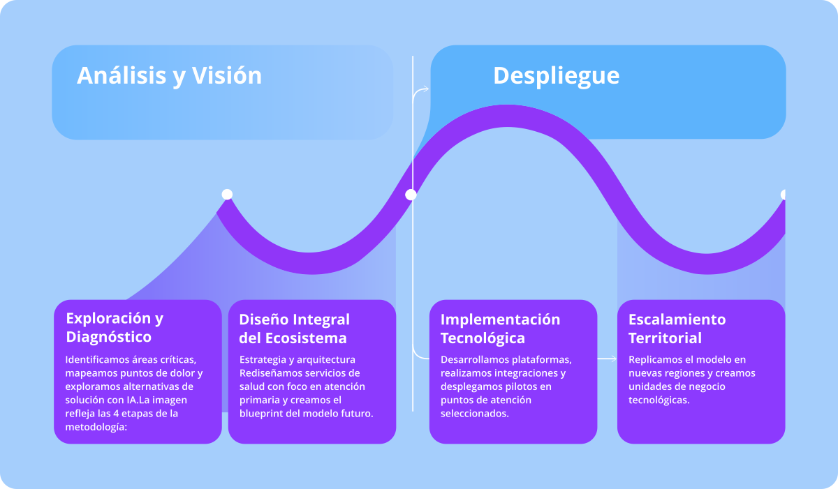 Arquitectos de soluciones que diseñan el plano estratégico y tecnológico para transformar tu organización de salud con IA segura, escalable y con ROI medible.